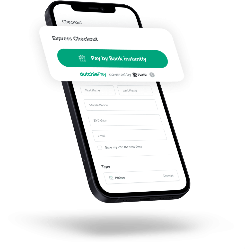 No delivery fee when you pre-pay with Dutchie Pay by Bank!