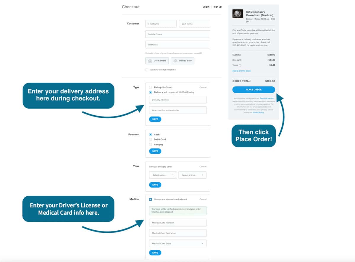 No cash? No problem! Our dispensary now offers contactless payments with Aeropay. All you need to do is simply choose Aeropay at checkout and pay before your delivery or during your delivery. This convenient payment solution is free for our customers, secure and requires no downloads or sensitive information.
